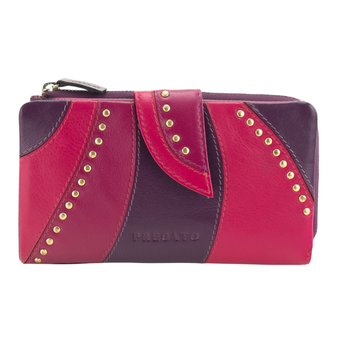 Precioso billetero en piel muy suave, color burdeos y marrón chocolate.