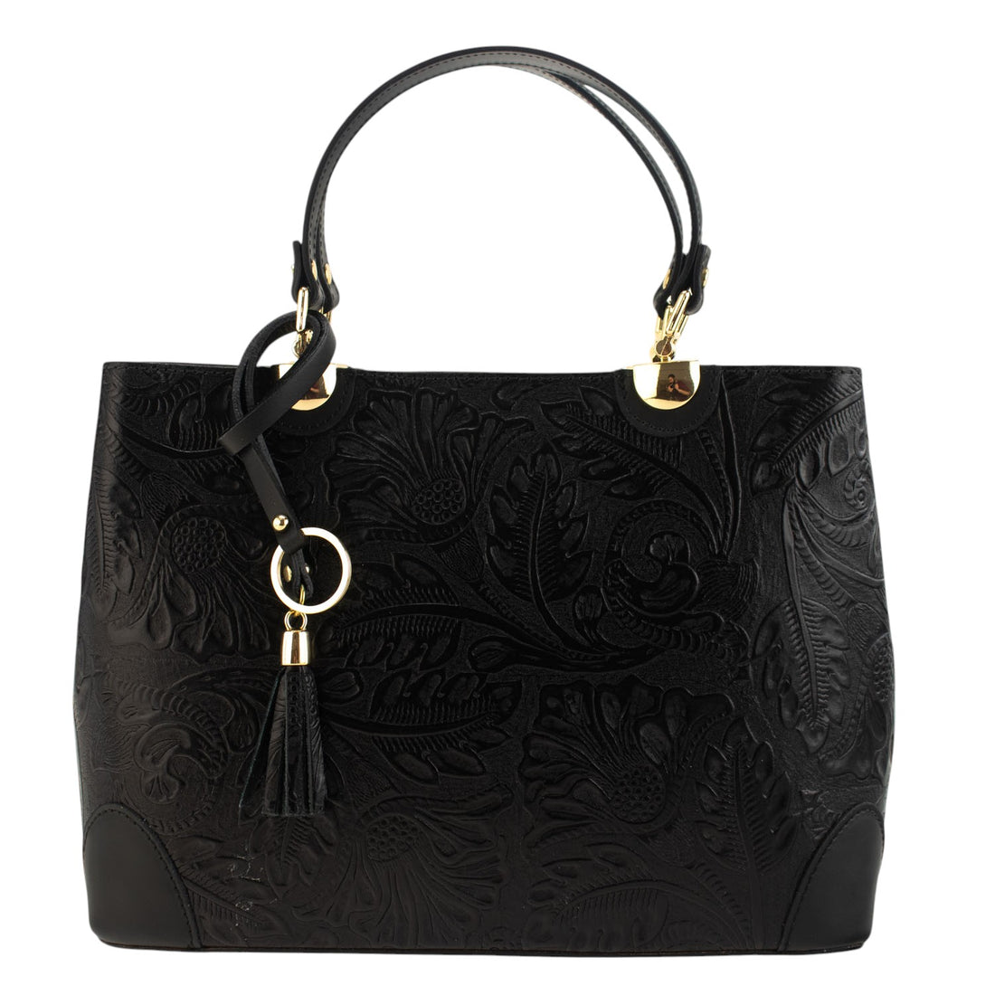 Bolso en piel Pregato Eleganza Negro Flores azules