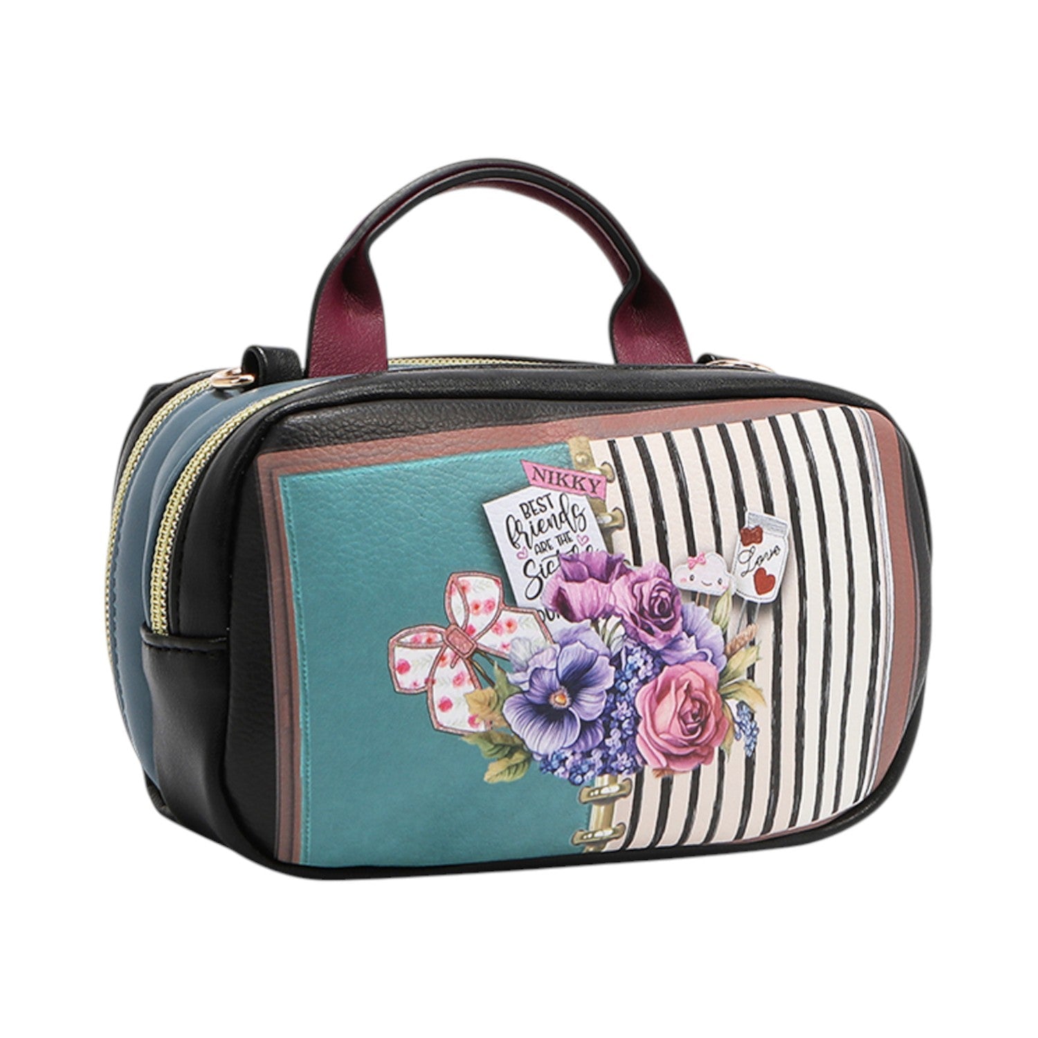 La Bandolera Micro Nikky Nostalgia es el complemento perfecto para quienes buscan un bolso pequeño pero funcional. Con un diseño artístico característico de la colección Nostalgia, combina estilo y practicidad gracias a sus dos compartimentos con cremallera y múltiples espacios interiores. Incluye asa de mano y cinta bandolera ajustable, ofreciendo versatilidad en su uso. Además, incorpora protección RFID para mantener tus pertenencias seguras.