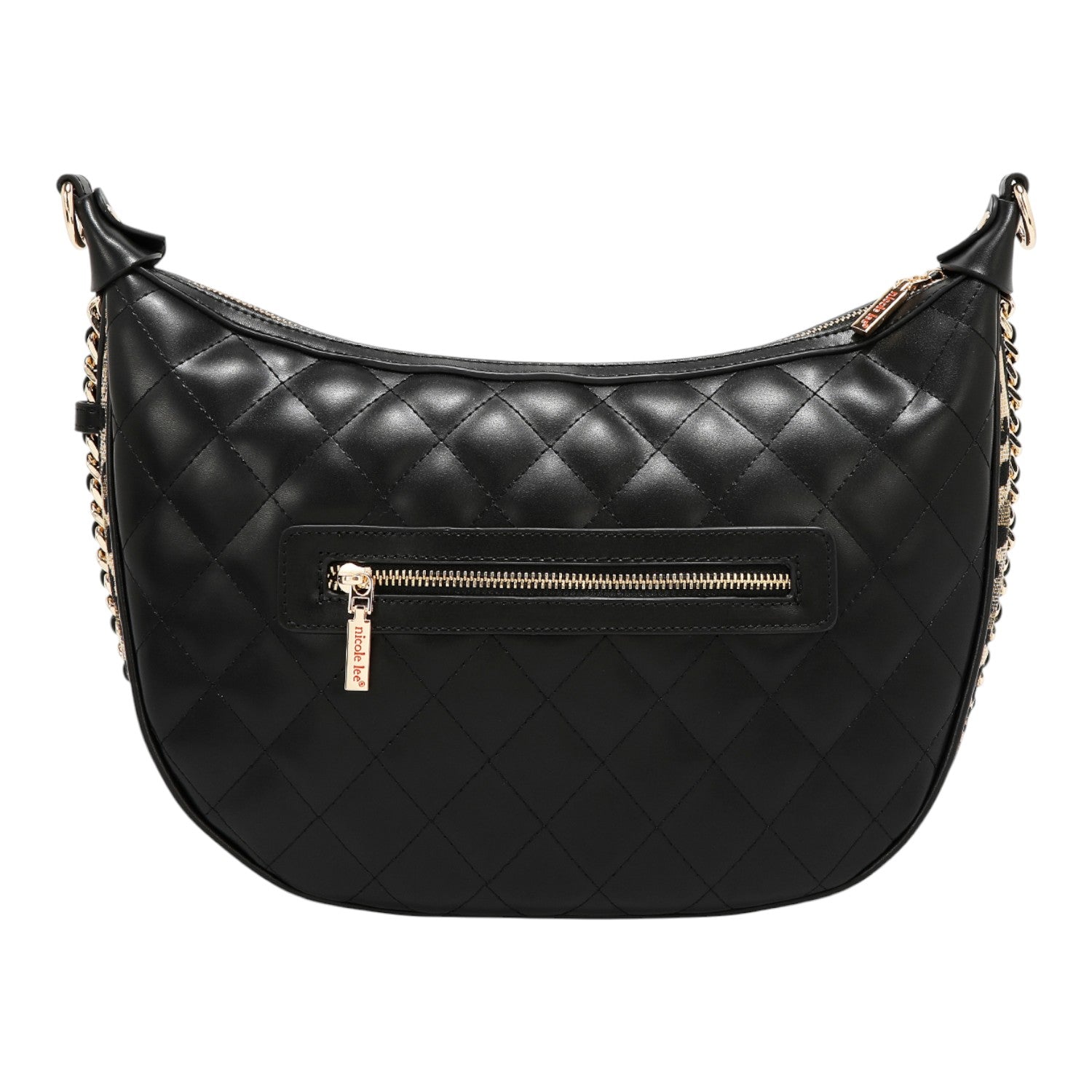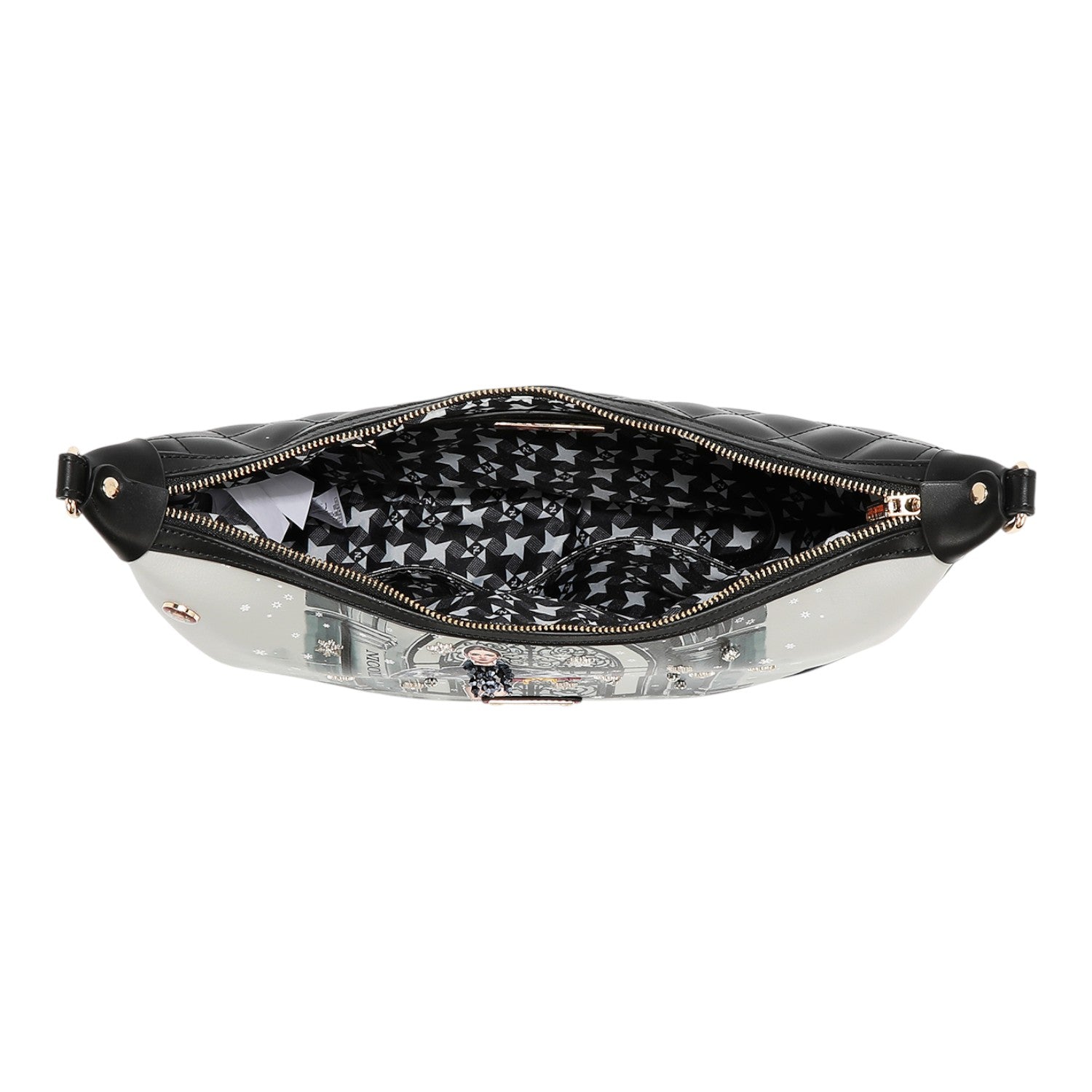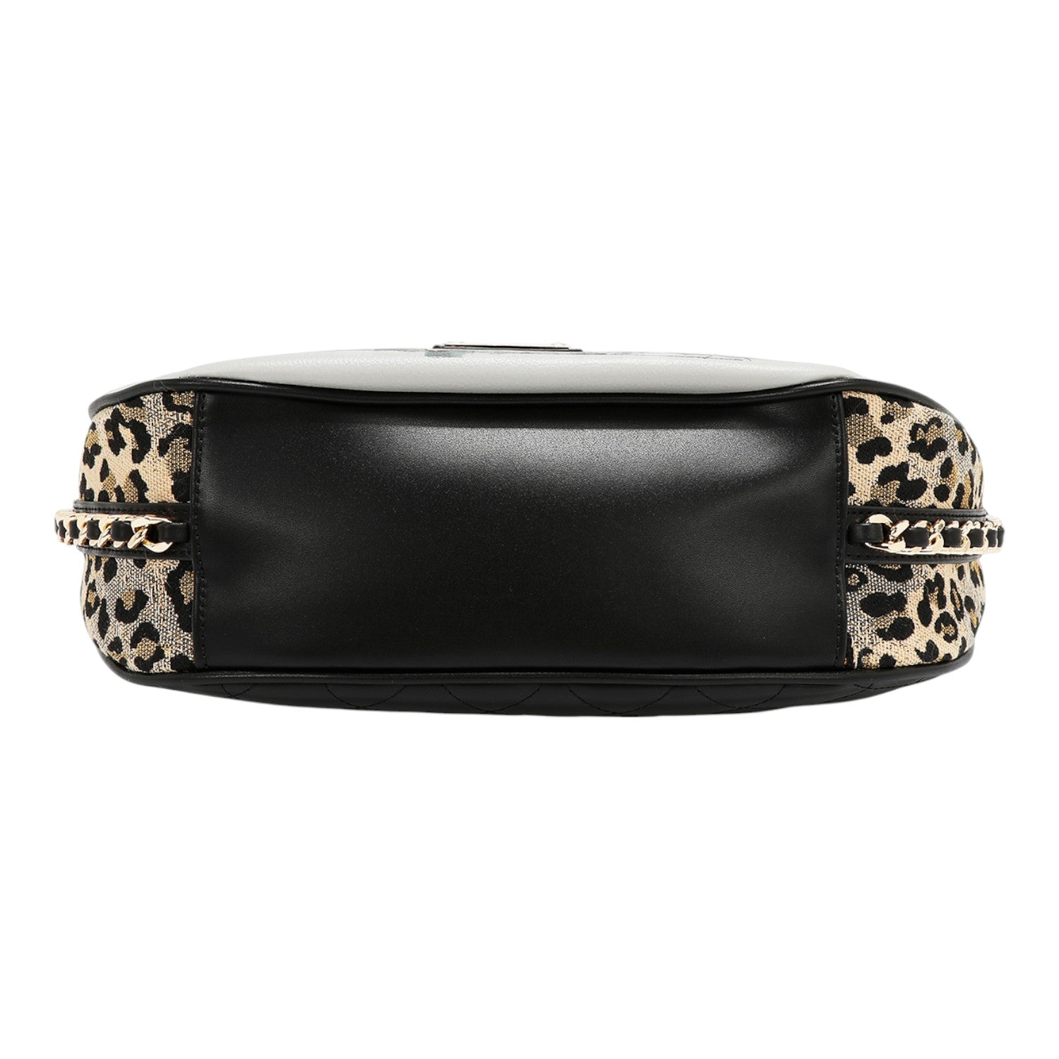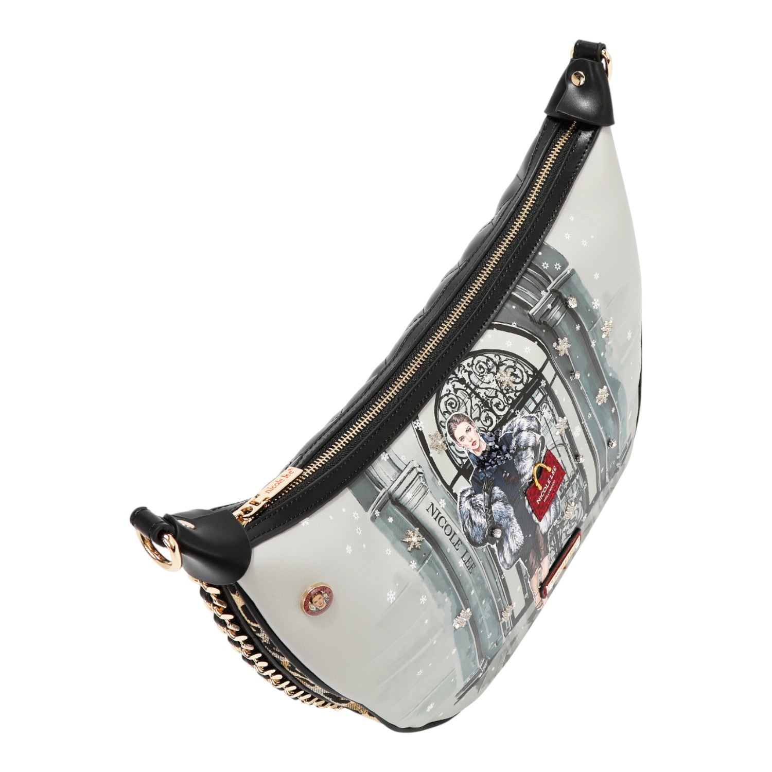 Bolso bandolera Nicole Lee de la nueva colección Moda SnowFlake con cinta regulable a la altura deseada, cierre de cremallera completo, lateral con decoración de cadena, estampado de leopardo, pedrería en la parte frontal y apliques para un efecto 3 dimensiones.