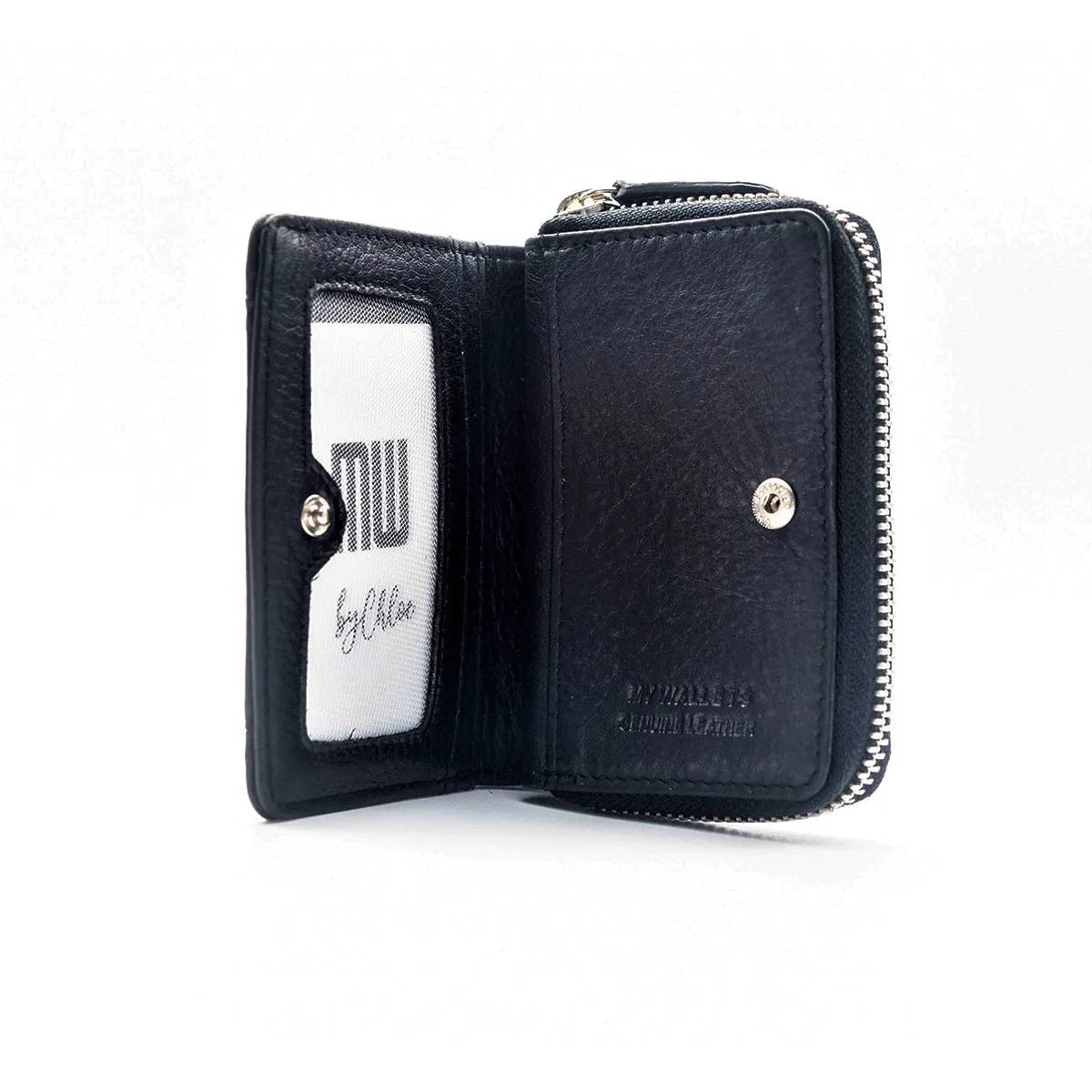 Billetero pequeño de mujer ByChloe con cierre de clic, con logo en placa metálica, detalles decorativos en costura, billetero pequeño de Piel 100% Vacuno con ventanilla interior, dos bolsillos para tarjetas, espacio para billetes a lo largo del billetero y compartimento separado para monedas con cierre de cremallera cuyo tirador es de Piel también