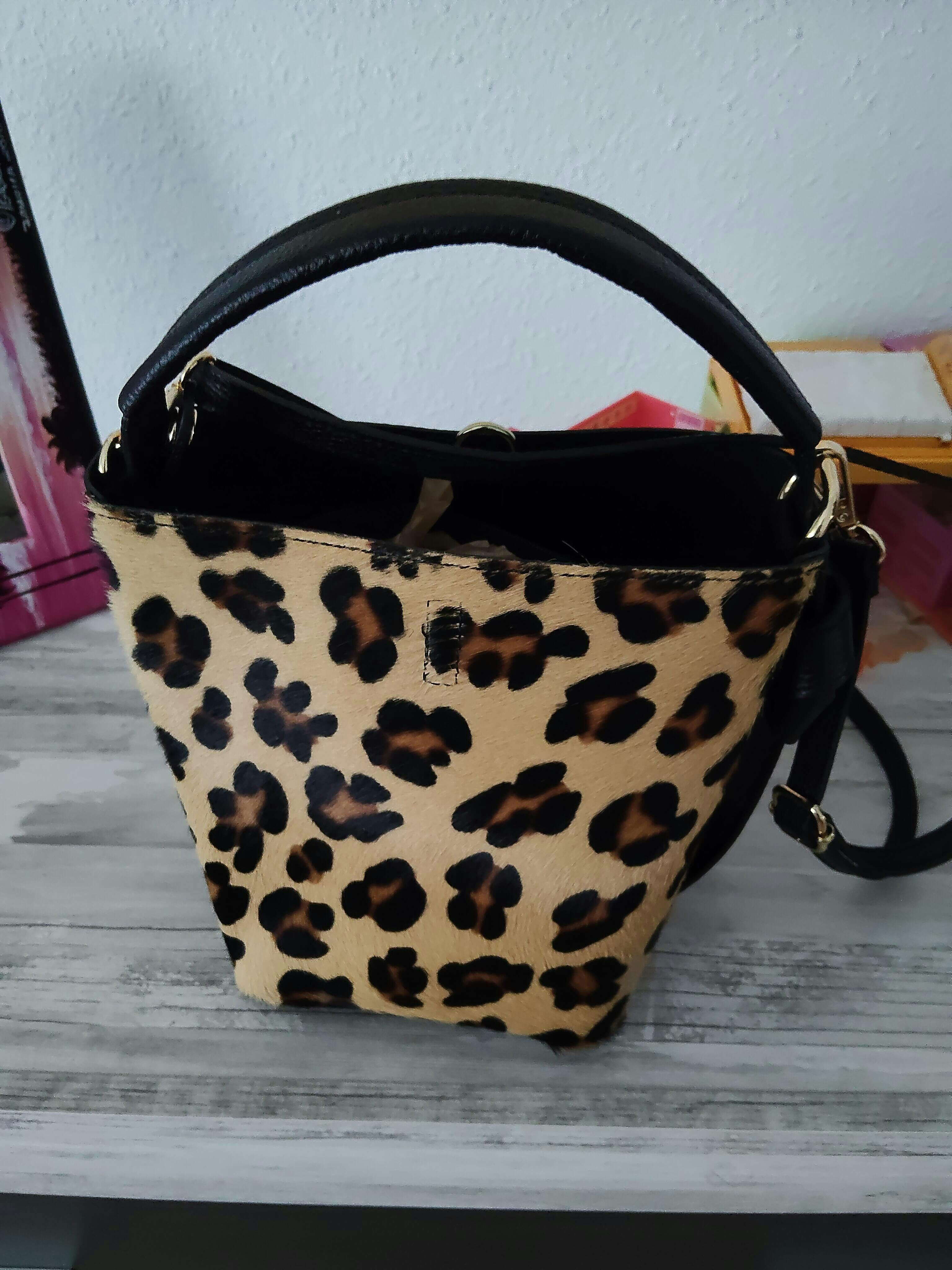 Bolso bucket en Piel Pregato Alessia Premium Leopardo