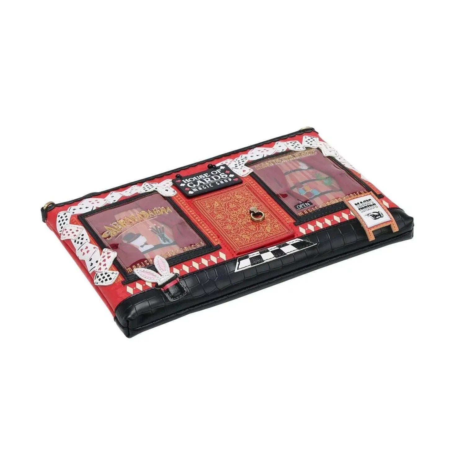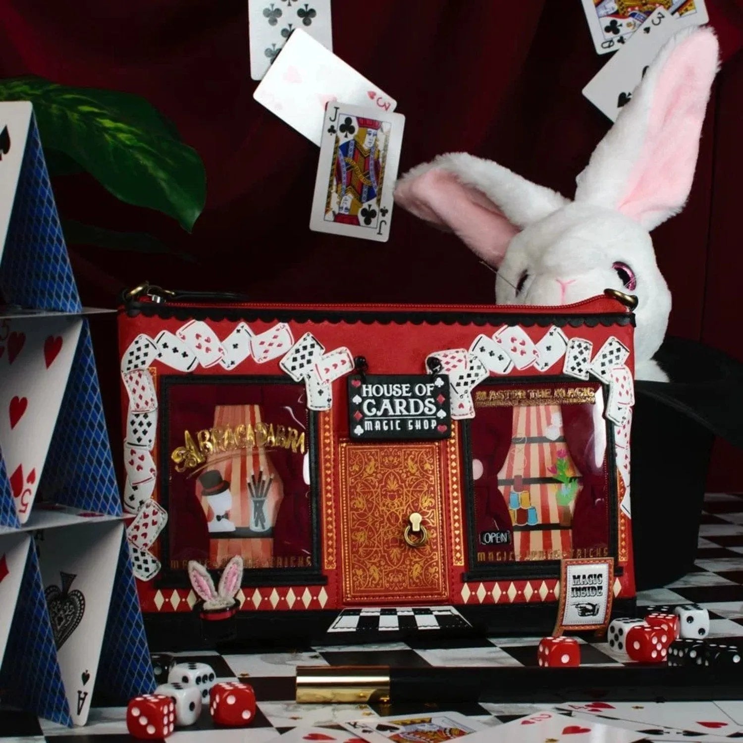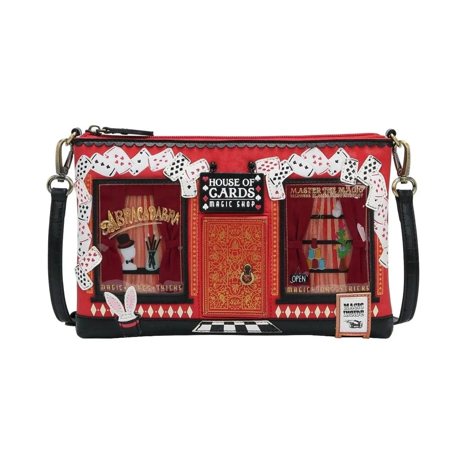Un bolso super original decorado en tonos rojos y negros inspirado en la preciosa tienda de artículos mágicos, este bolso es perfecto gracias a su cinta ajustable. Con un compartimento amplio con cierre de cremallera. Decorado con forro interior de Vendula y cierre de cremallera. Su acabado exterior con herrajes plateados y multitud de elementos 3D ¡Te encantará!