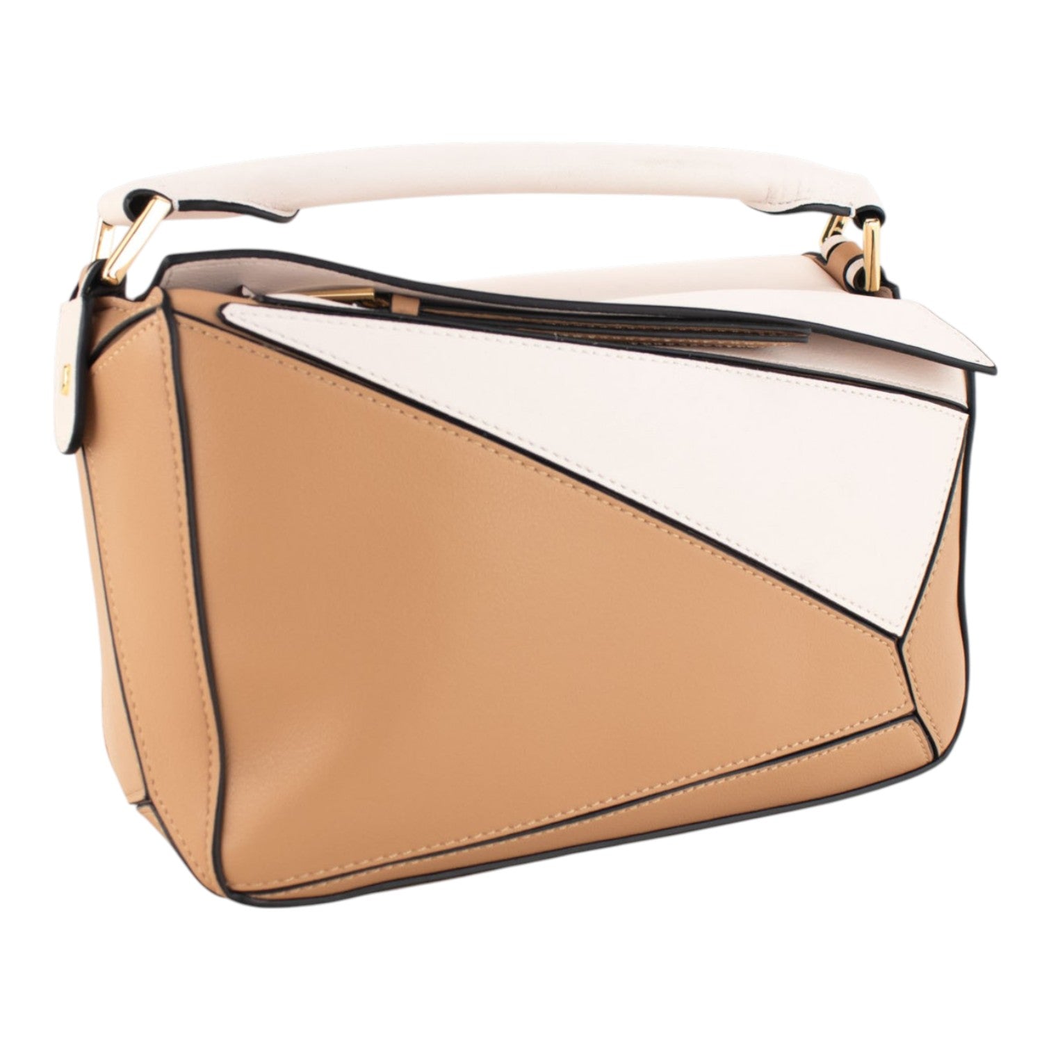 Bolso de Piel Pregato Modena Camel Blanco Bicolor
