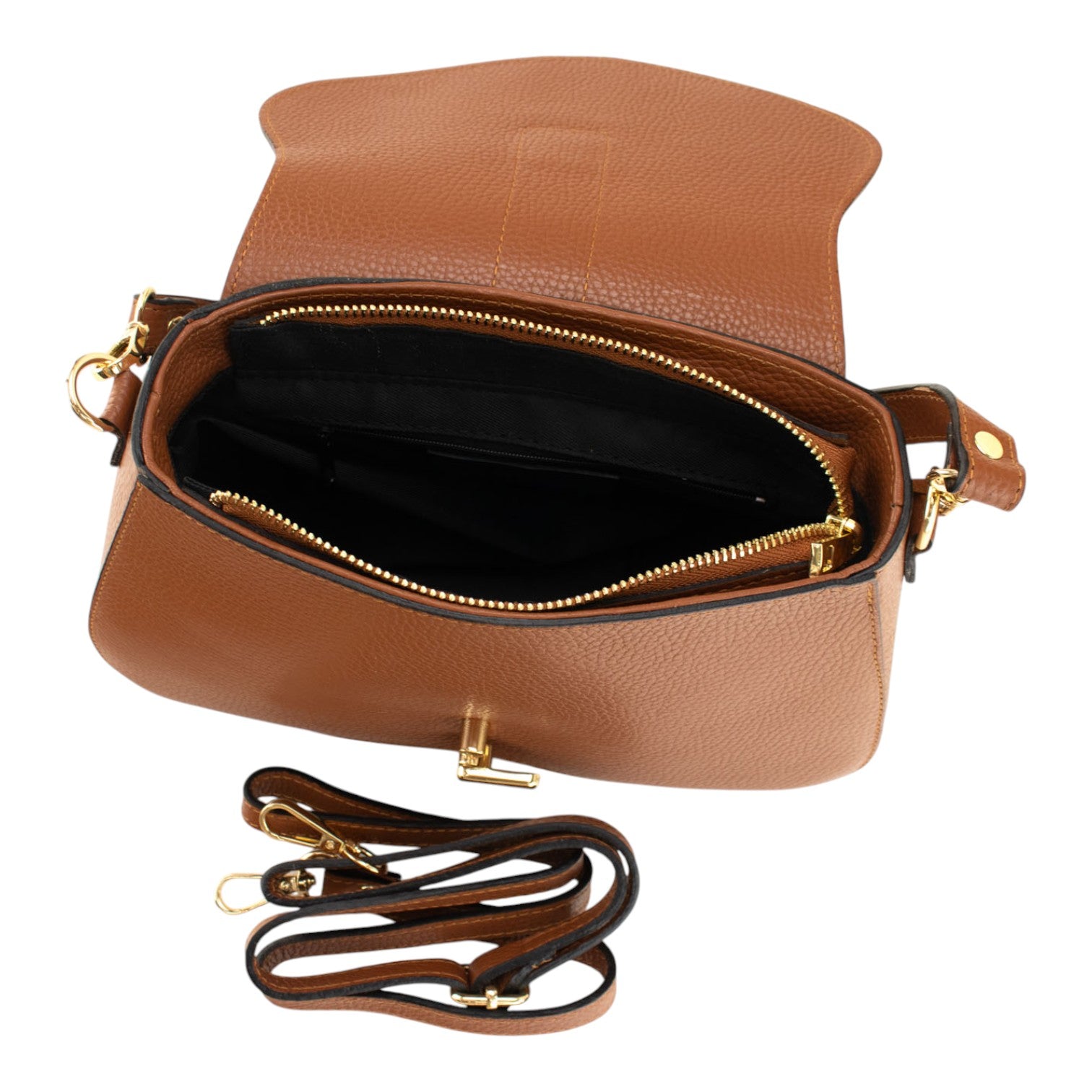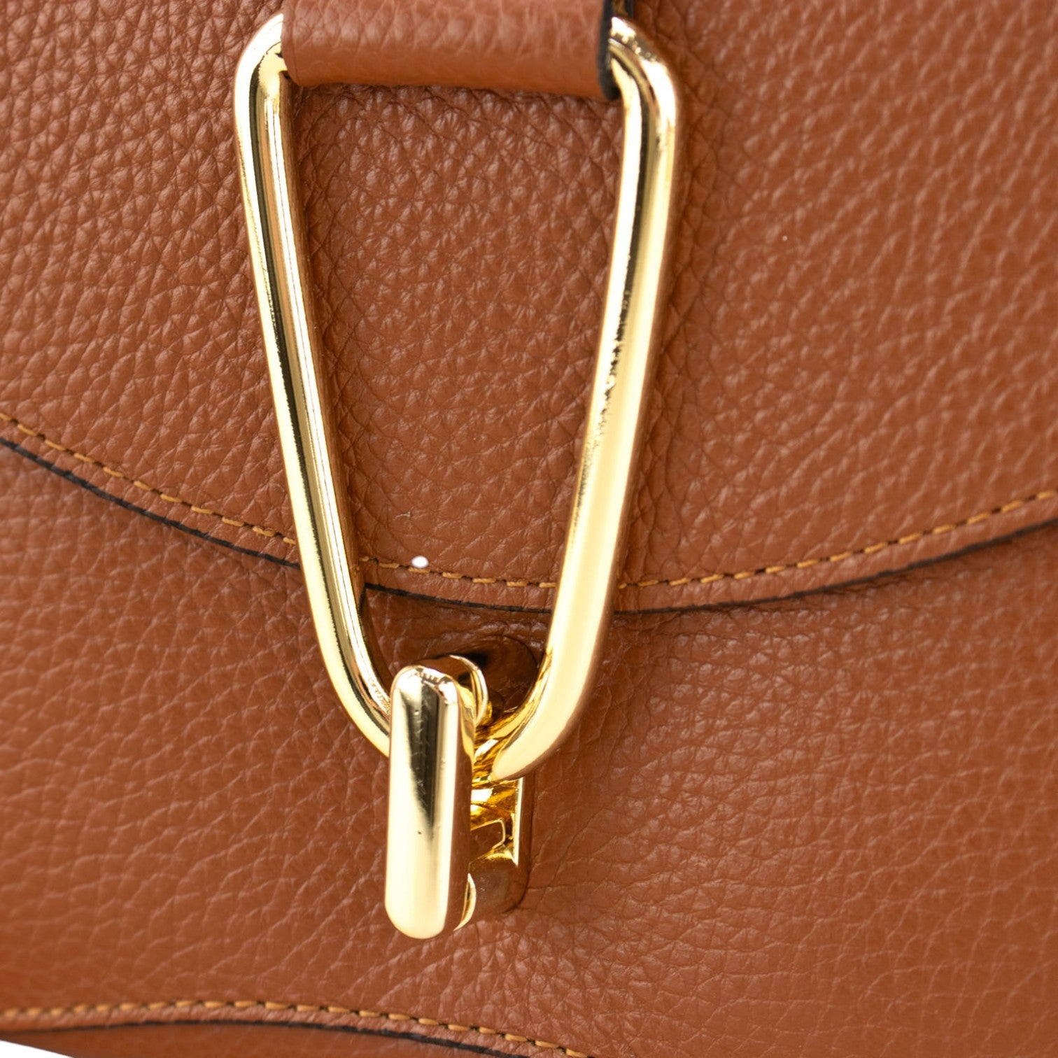 Descubre el Bolso en Piel Pregato Arezzo, una pieza elegante y súper práctica para acompañarte a diario. Su acabado en piel vacuno 100% en tono cuero y sus herrajes dorados le dan ese toque sofisticado que eleva cualquier look.
