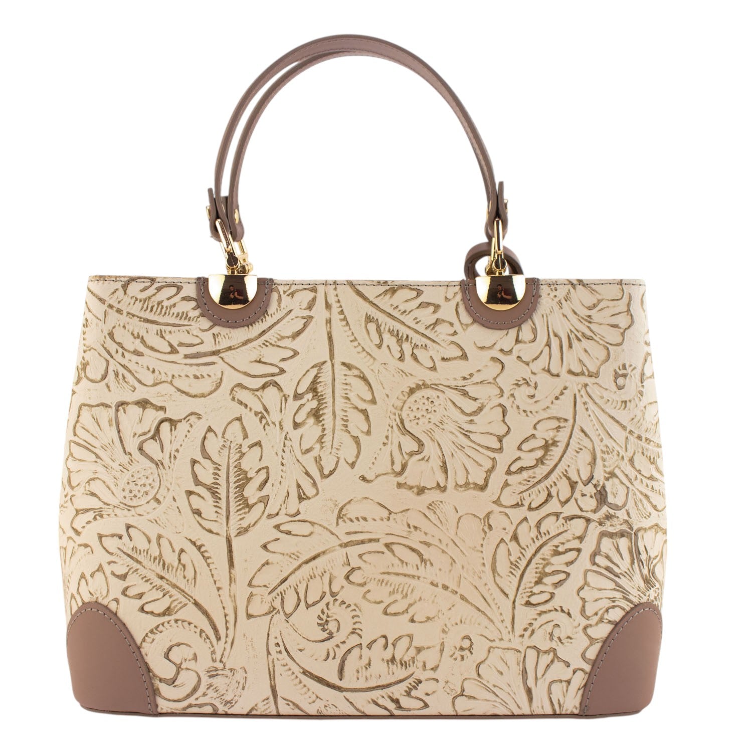 Bolso en piel Pregato Eleganza Grabado Beige vintage - KimondoShop