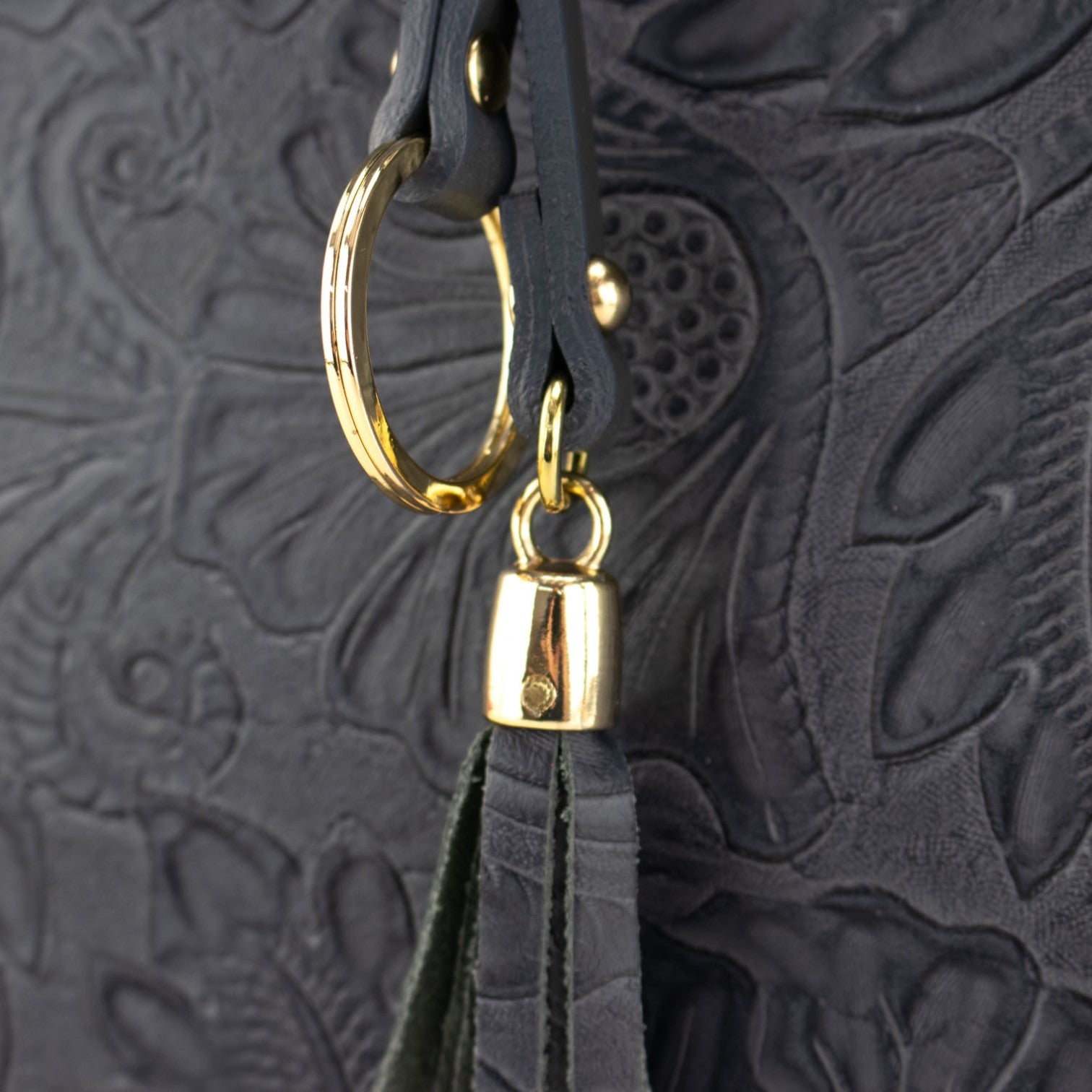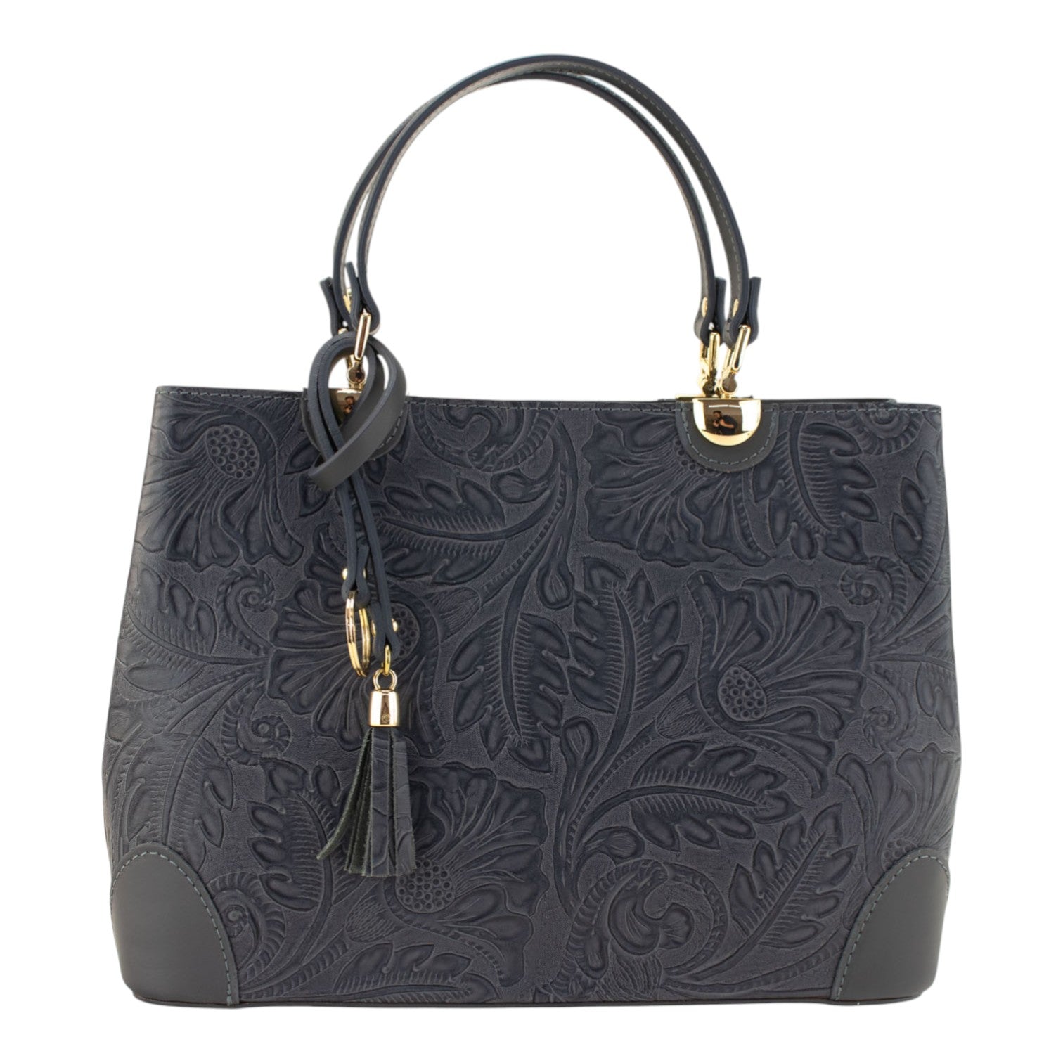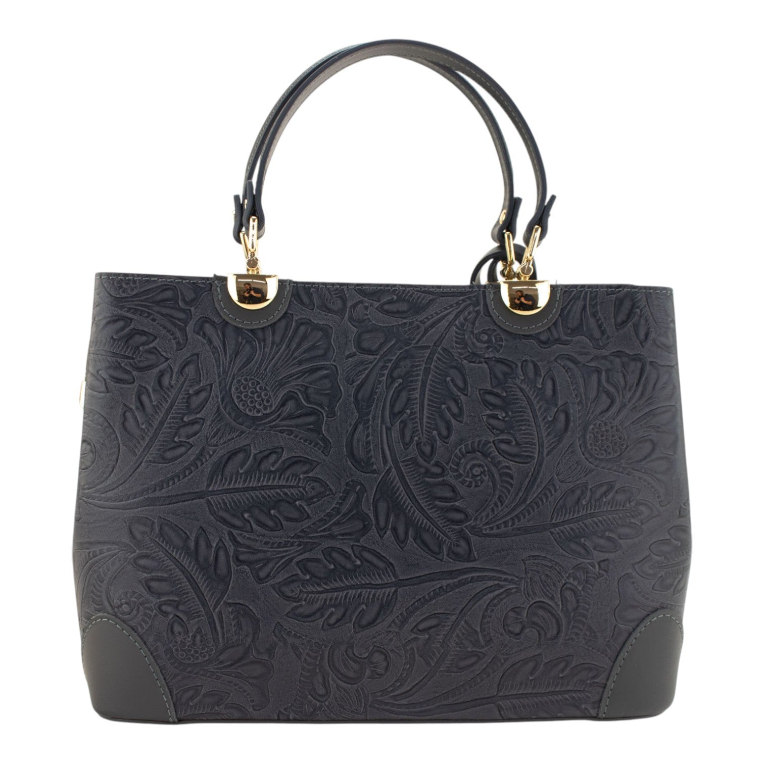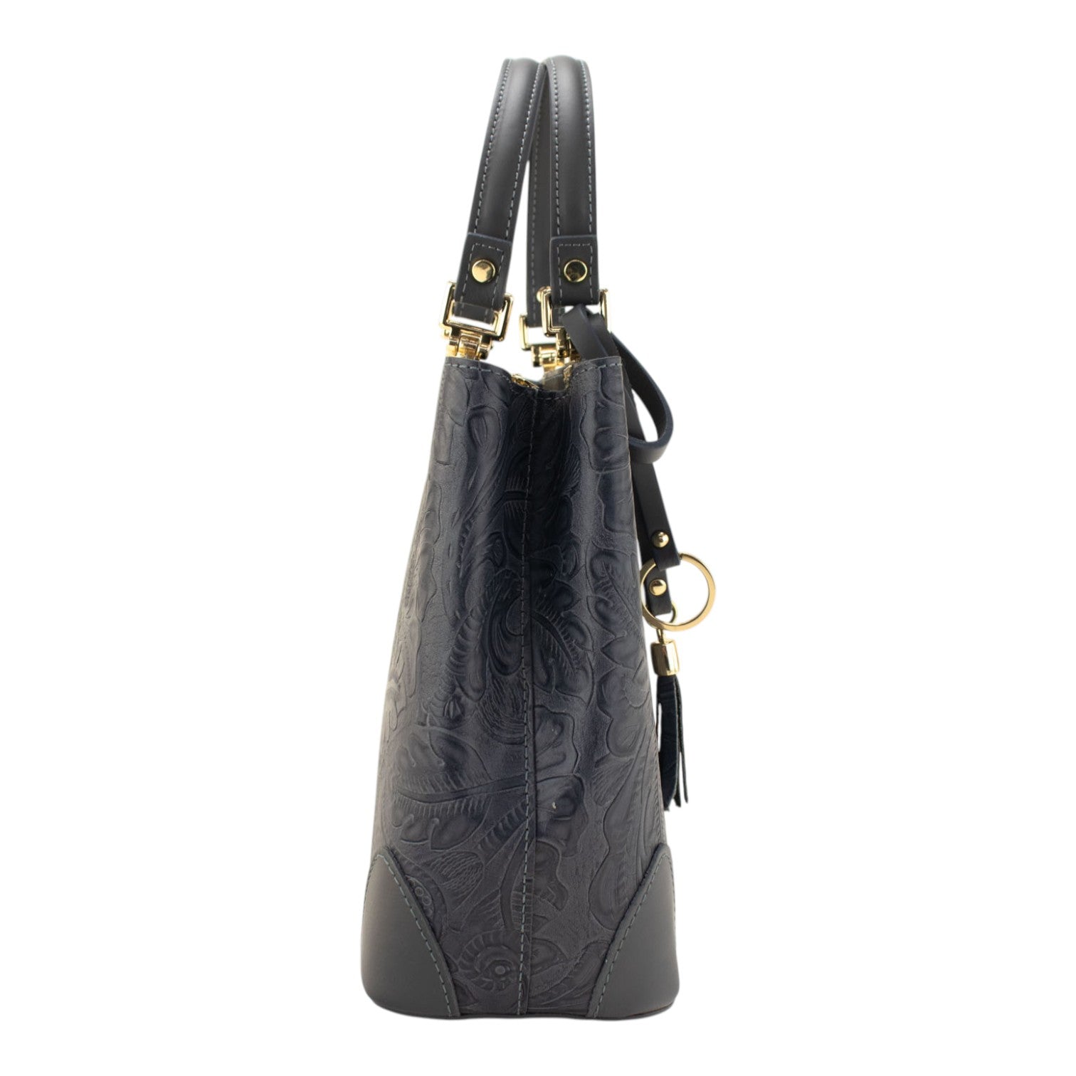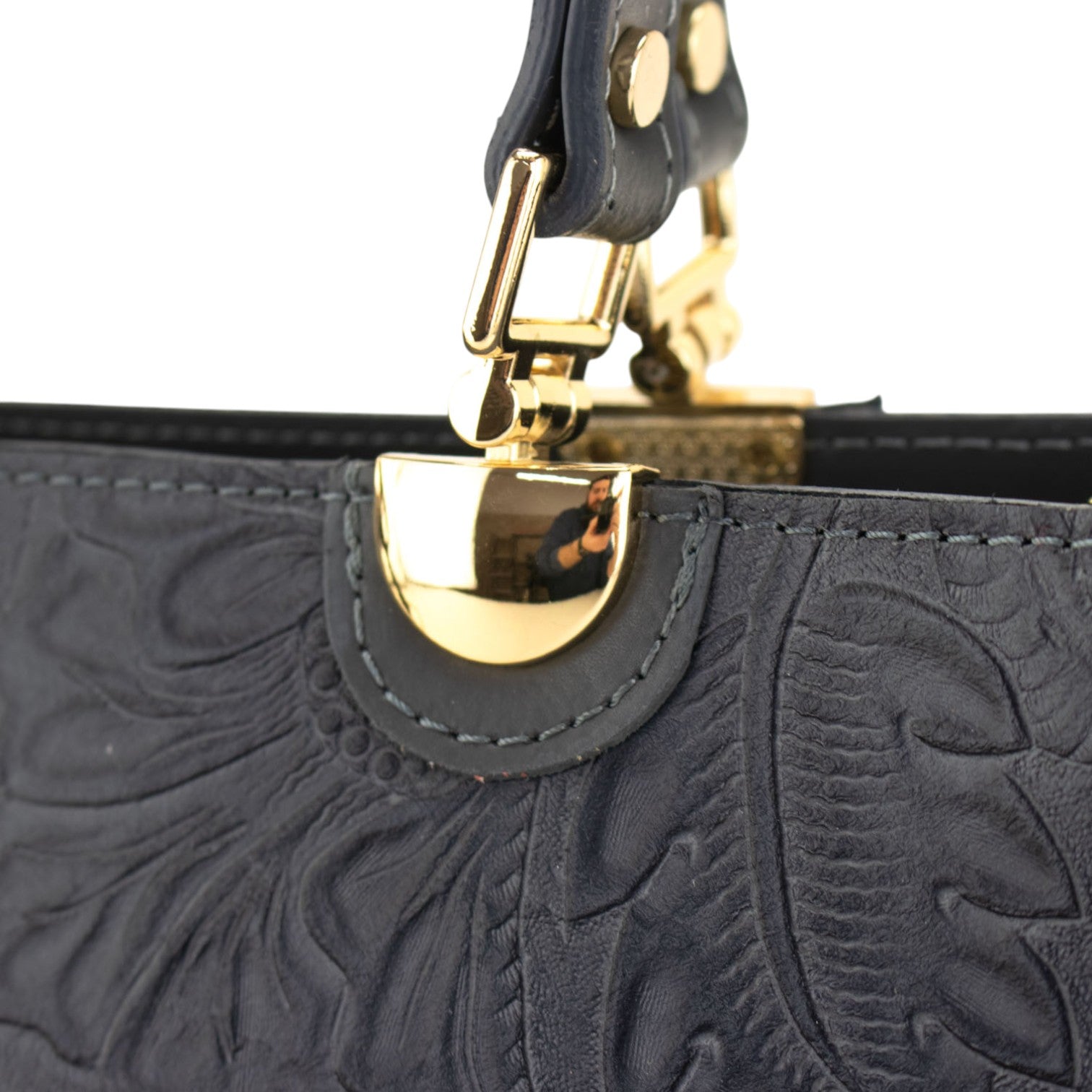 Bolso en piel Pregato Eleganza Grabado Gris azulado oscuro