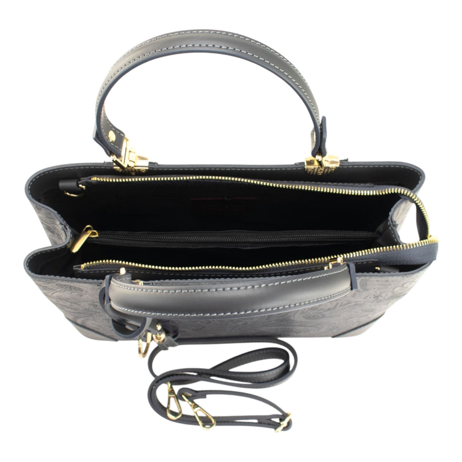 Un bolso muy completo y cómodo para lucir a diario, realizado en Piel 100% genuina vacuno italiana, este bolso está hecho en Italia con una excelente manufactura y calidad, tiene un cierre superior de cremallera con asas de mano y incluye cinta de bandolera adicional, tiene una gran capacidad y un separador intermedio que hace que puedas organizar las cosas en espacios separados.