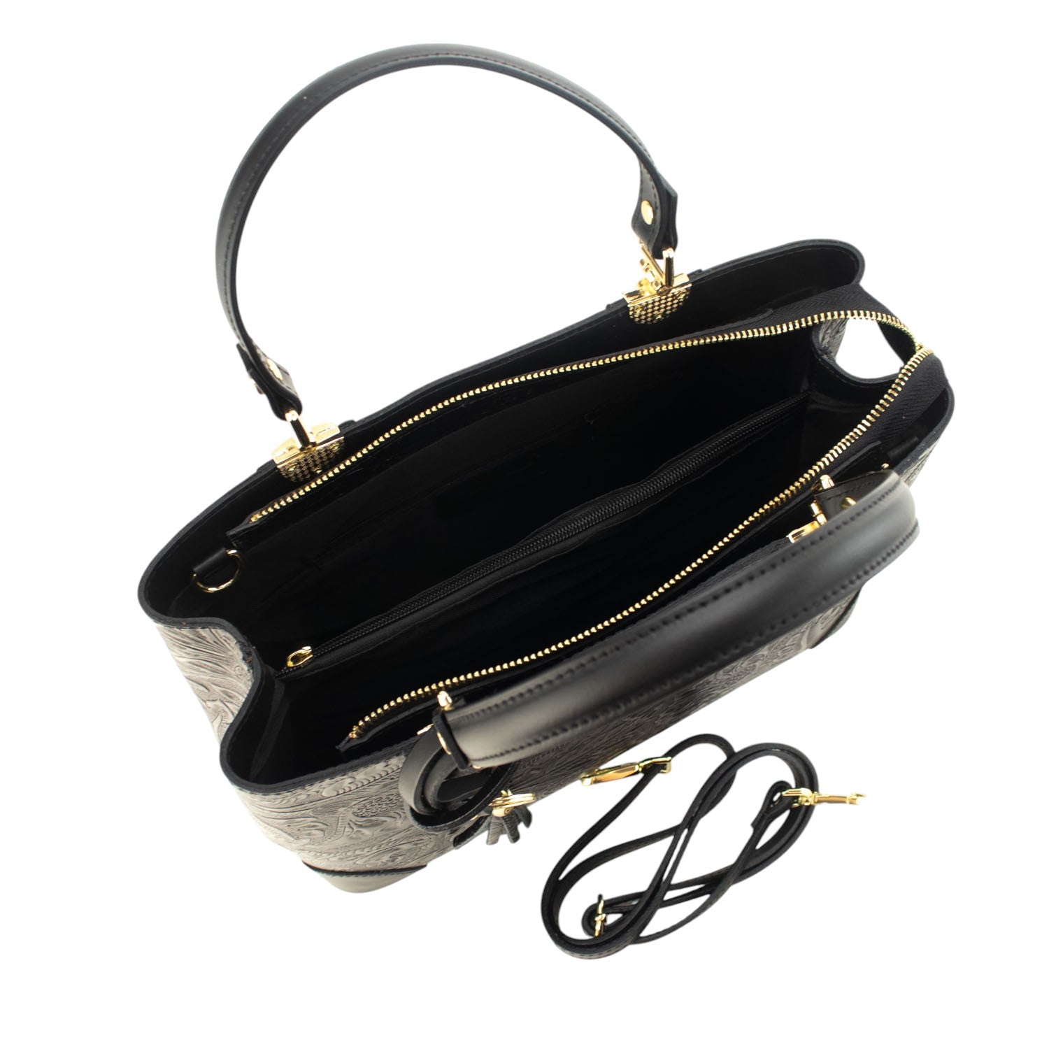 Bolso en piel Pregato Eleganza Grabado Negro - KimondoShop