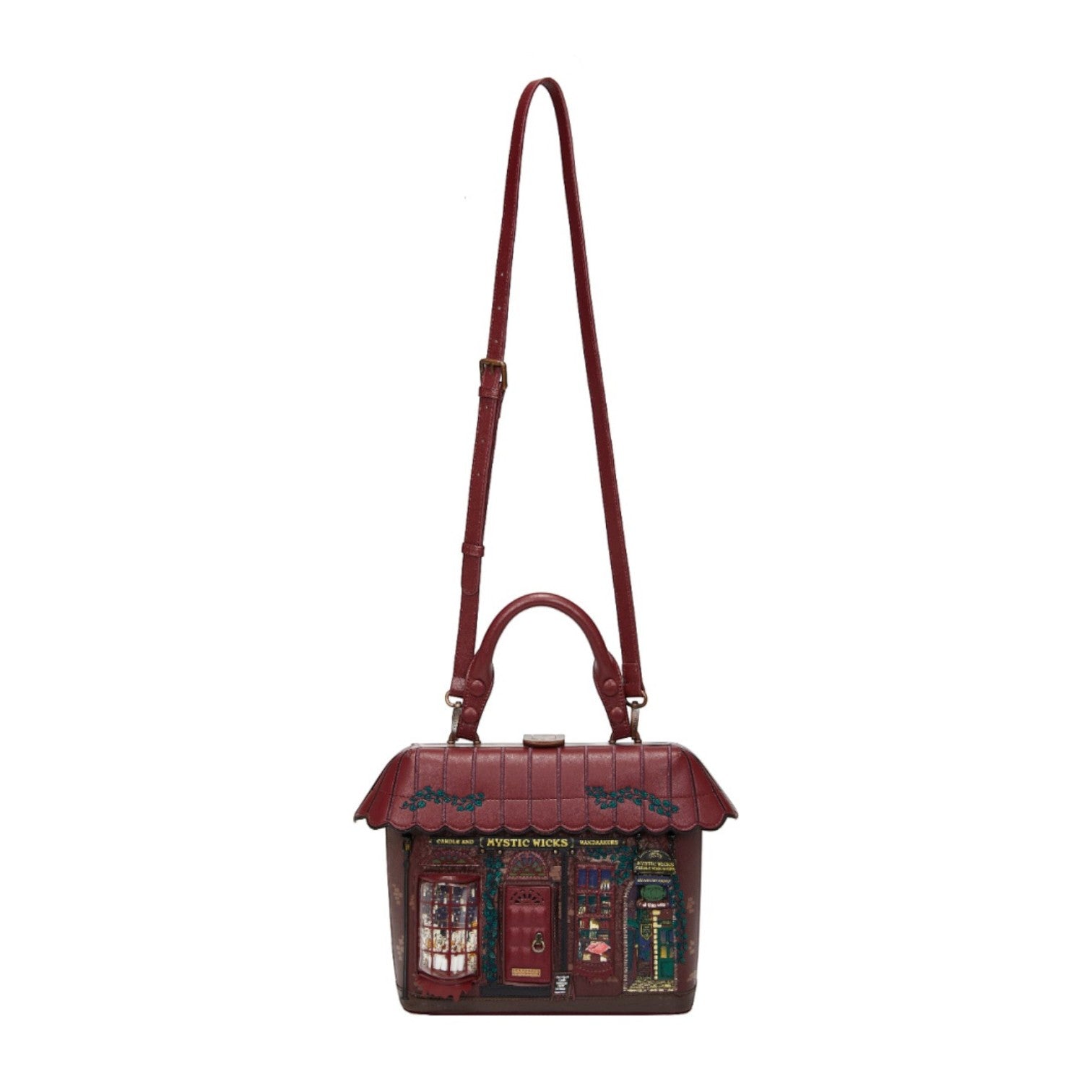 Un bolso que te enamorará nada más tenerlo, está repleto de detalles combinando tonos burdeos inspirado en las tiendas de velas, mechas místicas y varitas, viene con detalles en relieve y bordados que lo hacen único, tiene apertura con cierre semi rígido con broche y cremallera, además de cinta regulable.