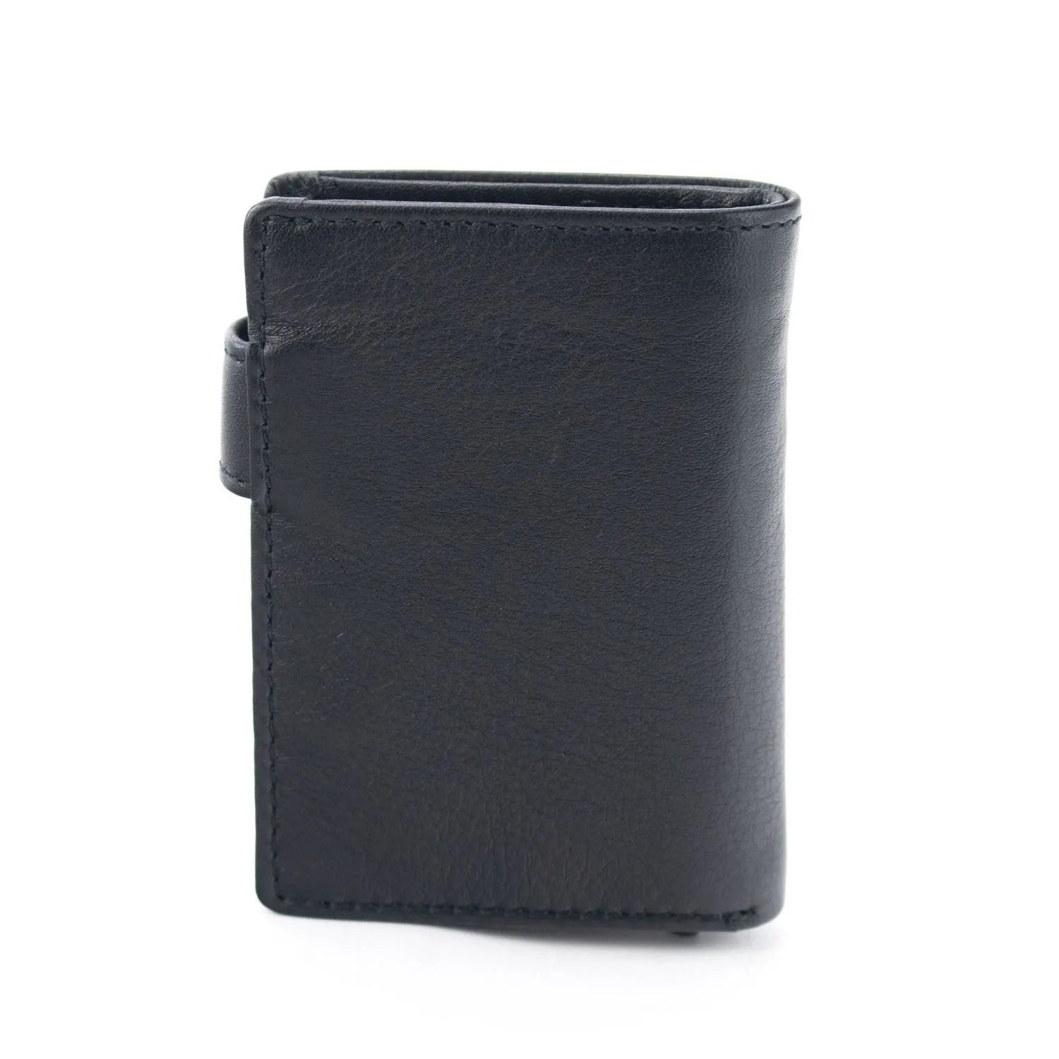 Cartera hombre estilo Secrid, con cierre de broche, dos espacios para tarjetas en un lado y el compartimento secrid para empujar tus tarjetas, además incluye billetero, muy compacta ideal para ocupar poco espacio.
