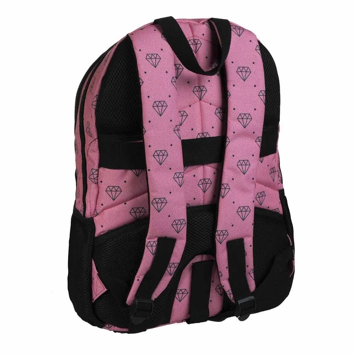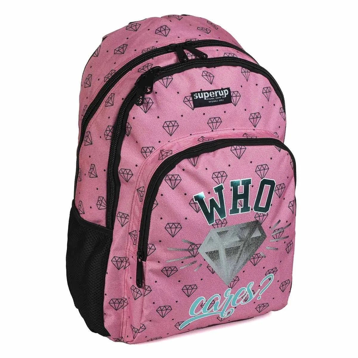Listo para el curso escolar con la Mochila escolar doble Superup Who una mochila escolar en tonos rosados con dos separaciones principales para poder guardar la carpeta, libros y libretas y un bolsillo exterior para separar el estuche y un ordenador portátil, ambos con cremalleras de muy buena calidad y gomas laterales para poder llevar una pequeña botella o refresco